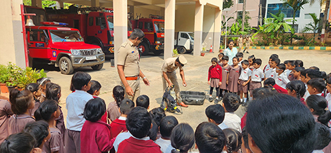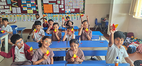 Students of Grade 1 enjoyed a bag-free day on Oct 28th, to foster hands-on, interactive learning experiences. They spent the day sharing their favourite learning moments, painted diyas and played games. A field trip to the local fire station added to their experience, where they witnessed equipment used by firefighters. The firefighters delighted their young audience as they demonstrated the use of a powerful water hose to extinguish fires, explaining how they control water pressure to reach required spots during rescues. The Bag-free Day proved to be a day of learning by doing and observing for the students.
