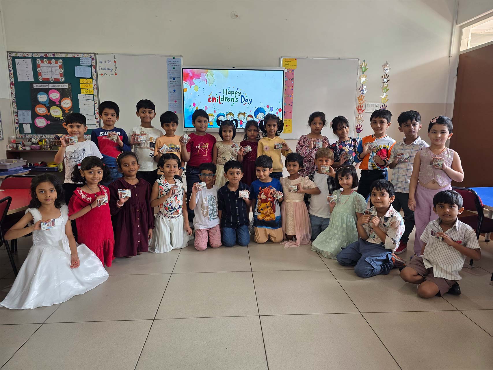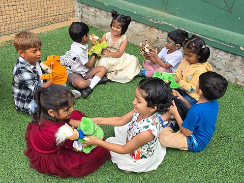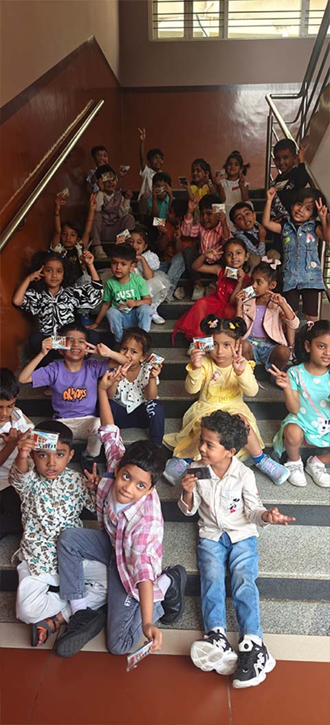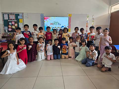 Children’s Day was celebrated with great enthusiasm and excitement. The campus buzzed with joy as students, dressed in colourful outfits, were warmly welcomed by a cheerful cartoon character at the entrance. The celebration began with a captivating storytelling session led by Aaira Zuryab’s parents, Dr. Niyaz Ahmed and Dr. Noor Ayesha Begum and then went on to lively outdoor games that brought smiles and laughter all around. After this, the children coloured the worksheet. Once done, the children then learnt about the importance of Children’s Day and Pandit Jawaharlal Nehru. The programme finally continued with entertaining videos and finished with a fun-filled quiz. It was truly a memorable, bagless day that combined fun, learning and happiness. Each child carried home a magnet takeaway as a cherished memory of the celebration.