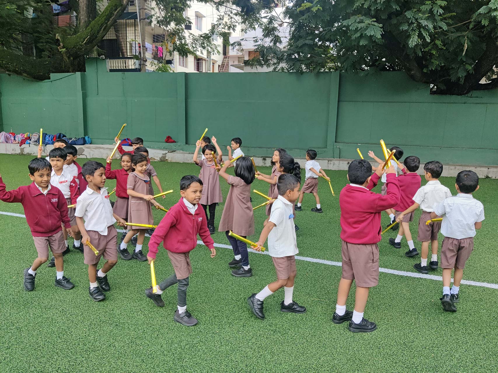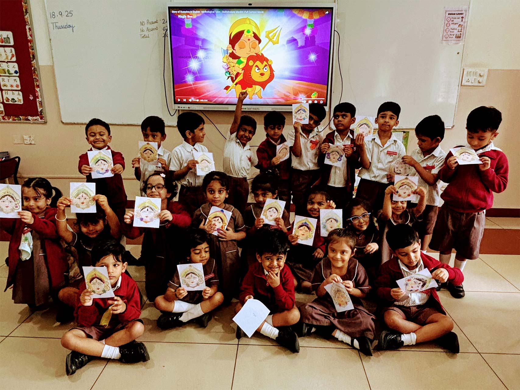 The Dussehra celebration at kindergarten was filled with joy, learning and festive fun. The day began with an engaging story and a PowerPoint presentation that helped children understand the significance of the festival and how it is celebrated in different regions of India. They enjoyed a hands-on art activity, bringing images of Goddess Durga to life with bright and cheerful colours. A fun dart game added to the excitement of the celebration. The festivities came to a cheerful close with an energetic Dandiya dance, where the little ones danced joyfully with decorated sticks. The event brought happiness and cultural awareness, leaving the children with joyful memories.