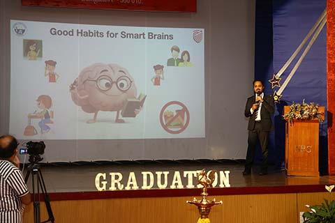 The Senior KG Graduation Day at National Public School, Rajajinagar, on 31 January 2026, was a joyous celebration. The event began with an invocation and lamp lighting by the principal and middle-level leadership team. Dressed in graduation gowns, the students received their certificates to cheerful applause. They also sang the graduation song, adding to the festive atmosphere. Dr. Shabari Girishan K V, MBBS, MS (Gen Surgery), MCh (Neurosurgery), Fellowship in Epilepsy and Functional Neurosurgery (AIIMS, New Delhi), made the occasion truly special with a highly informative presentation.