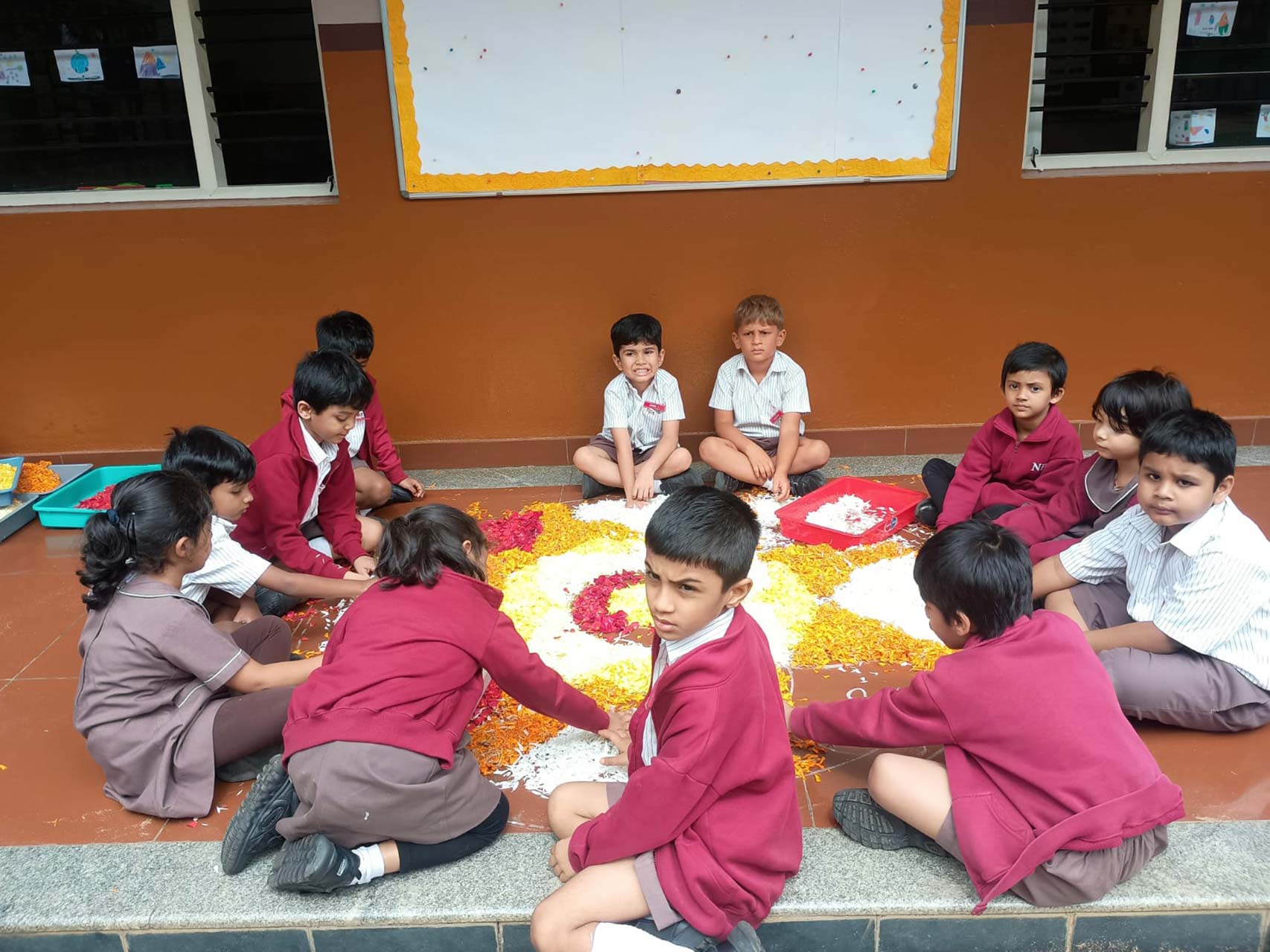 Kindergarten students joyfully celebrated the vibrant festival of Onam with great enthusiasm and collaborative spirit. As part of the festivities, the young learners came together to create a resplendent Pookalam—a traditional floral design—using a variety of colourful petals. Their joint effort not only highlighted the beauty of teamwork but also introduced them to the rich cultural heritage associated with the festival. In addition to the floral decoration, the children enthusiastically engaged in completing a range of colourful Onam-themed activity sheets. The celebration brought about a sense of unity, cultural appreciation, and festive joy.
