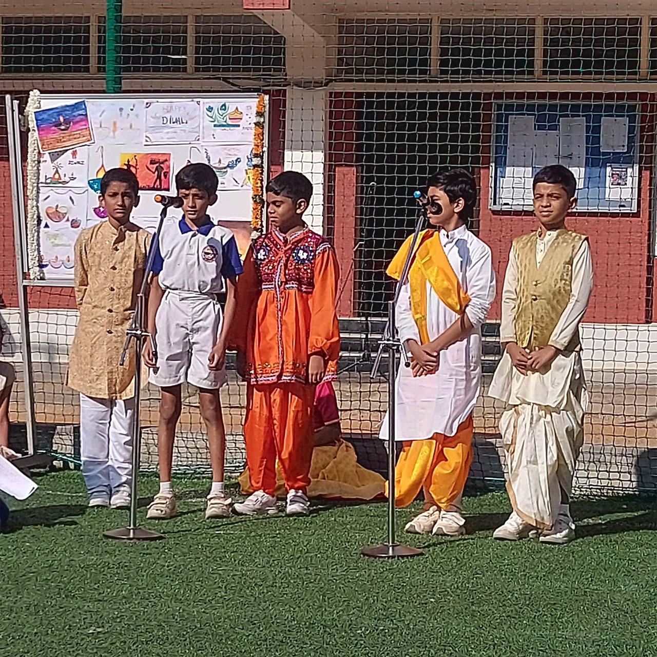 The Diwali celebration assembly, held on 6th November at National Public School, Rajajinagar, was a colourful and enlightening event. Grade 5C took charge of presenting the vibrant festival of lights, bringing its significance to life The assembly began with a warm introduction by the narrator who captivated the audience by recalling how Diwali was celebrated in the olden days. This nostalgic account transported everyone back in time, emphasizing the essence and traditions of this festival. This was followed by a beautiful Diwali shloka, creating a serene atmosphere that reflected the spiritual side of Diwali.
