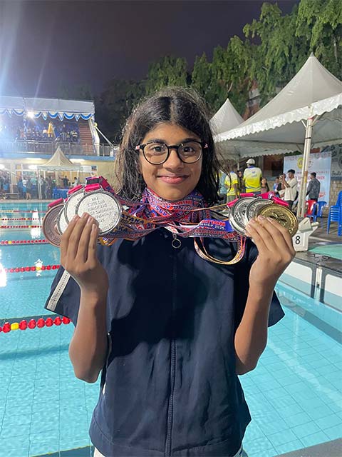 Tanvi Gaurav of Class 9A delivered an impressive performance at the State Junior Swimming Championship, earning multiple accolades across individual and relay events.
