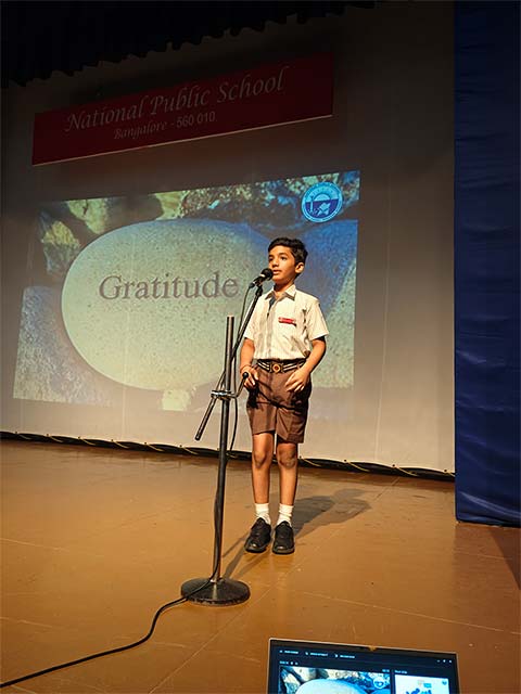Class 3D presented an engaging assembly on the value of Gratitude. The event began with a warm welcome speech and current event updates. Key highlights included a role play showcasing the importance of expressing gratitude in everyday life, a lively "Thank You" dance, and interesting facts about gratitude. The assembly concluded with a heartfelt vote of thanks and an inspiring address from the teacher. Parents appreciated the school’s efforts in instilling valuable life lessons in young children.