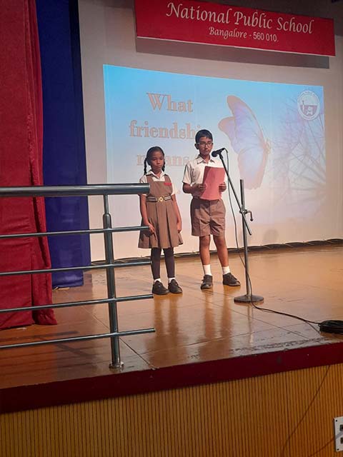Class 3E presented a heartwarming assembly on Friendship in the school auditorium. The event highlighted the importance of true friendship, the qualities of a good friend, and how strong relationships contribute to well-being. It began with a welcoming speech, followed by a skit, song, dance, and a poem recitation, all celebrating the beauty of friendship, which deeply moved the audience. A few students also shared their thoughts on what makes a good friend. The event not only honoured friendship but also inspired students to cultivate qualities that make them better friends to others.