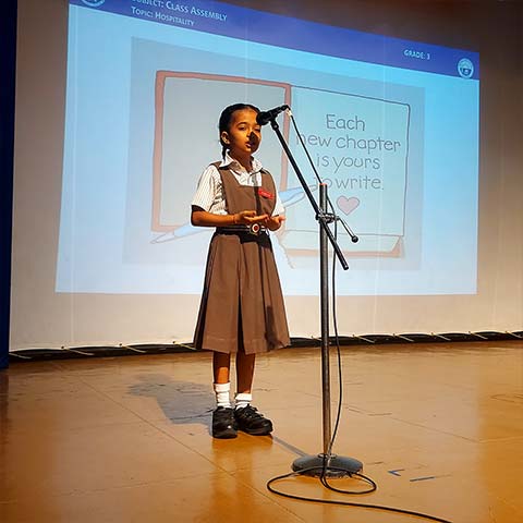Class 3A conducted an inspiring assembly on Hospitality, showcasing meaningful events that emphasized the value of welcoming and caring for others. The program included a heartfelt invocation, a song, a role-play, a short story on caring and sharing, a poem, and a pledge to practice hospitality daily. The assembly beautifully conveyed values beyond textbooks and received heartfelt appreciation from the parent community.