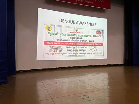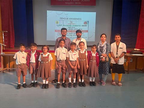 With the aim of combating the deadly disease Dengue, Bruhat Bengaluru Mahanagara Palike organised a special Dengue Awareness Program at National Public School, Rajajinagar on July 1, 2024 for the students of grades 3-8. The program educated students about the significance of community involvement in controlling the spread of dengue. The doctors gave awareness about dengue, especially the various stages of Aedes aegypti mosquito and how they breed in places like flower pots, tyres and other wastes where water gets collected. They also insisted on how a clean school ensures a safe school and how a clean home makes a healthy one. Overall, the Dengue Awareness Program proved to be an effective means of disseminating crucial information, fostering a sense of responsibility, and encouraging positive behavioural changes in the students for a dengue free environment.