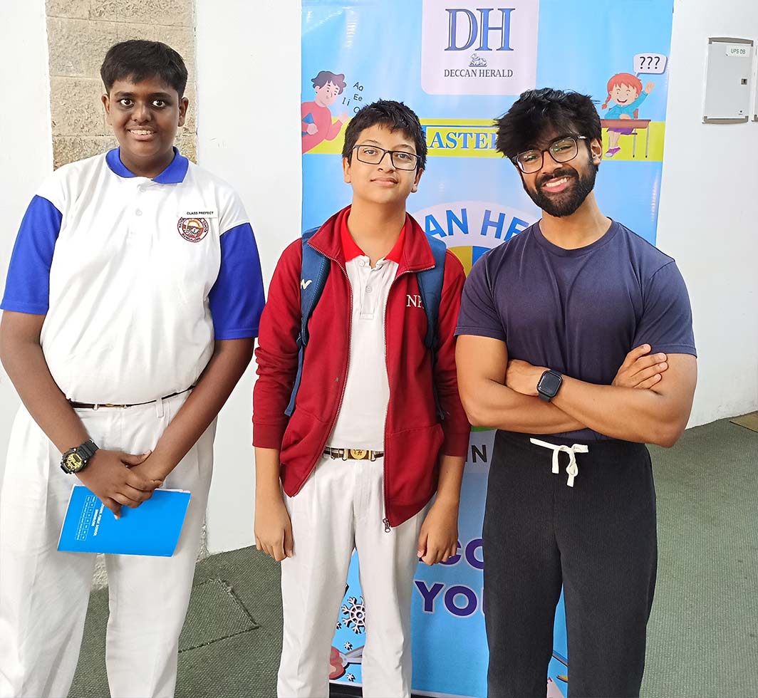As a part of Deccan Herald’s Newspaper in Education initiative, a fun filled theatre workshop called Spotlight was recently held. Tarun Sai of grade 8D and Tanav Gururaj of grade 10A NPS Rajajinagar had the chance to be a part of this creative event, designed to guide budding artists in the path of performing arts.