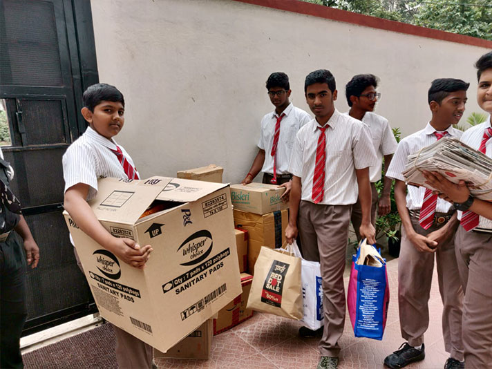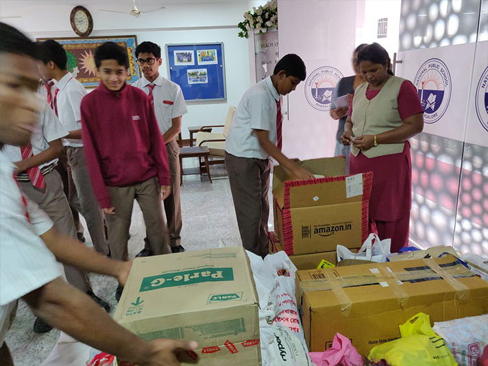 Students lent a helping hand to alleviate the situation by conducting a donation drive – clothes, blankets, milk powder, rice, pulses, sugar and sanitary napkins were collected, segregated, packed neatly and delivered to Kodava Samaj, Vasanthnagar to be sent to Madikeri.
