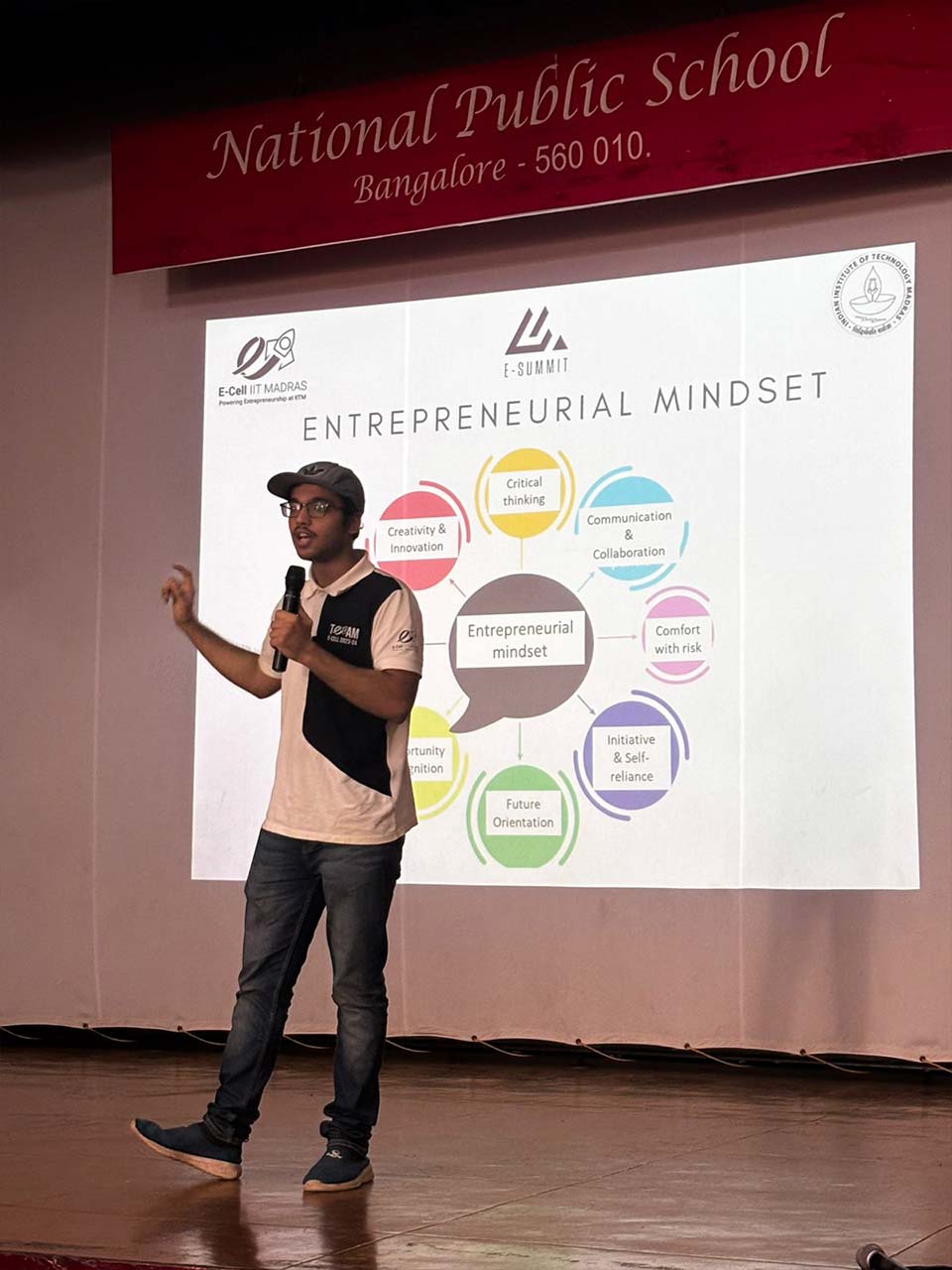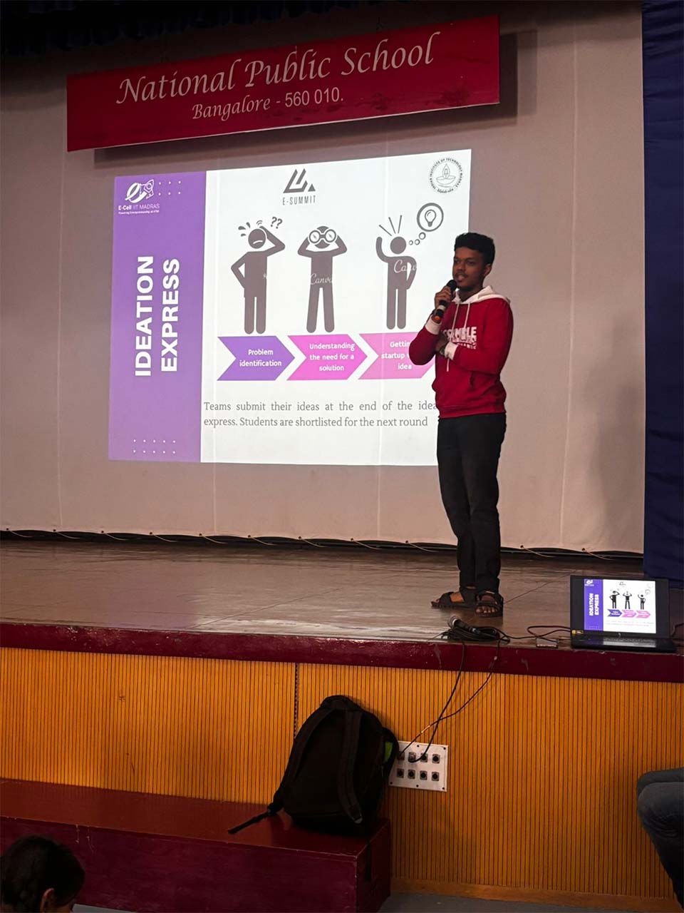 The E-Cell of IIT Madras is igniting innovation with E-21, a summit that turns bright ideas into impactful start-ups. Through workshops on ideation, market research, prototyping, and mentoring, students embark on an entrepreneurial journey, ending with a pitch to expert judges. To spark excitement, IIT Madras students visited National Public School, Rajajinagar and addressed students of Grade 8 and 11 to speak about the National Innovation and Entrepreneurial Olympiad. Those selected from the Olympiad will earn a spot at E-21, stepping into the world of entrepreneurship and shaping the future of innovation.