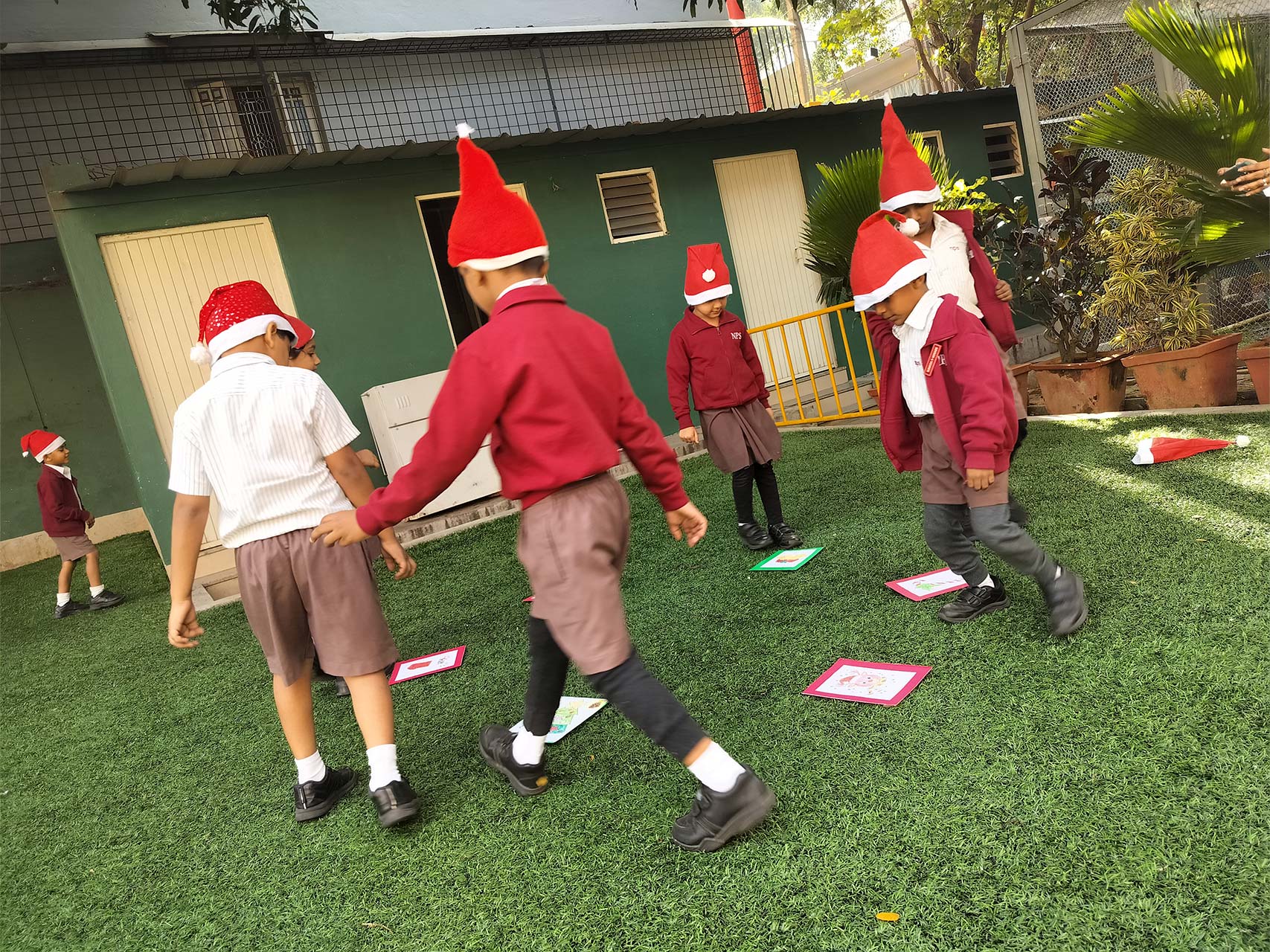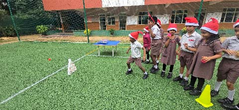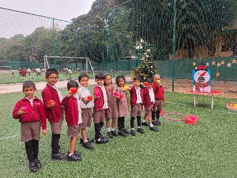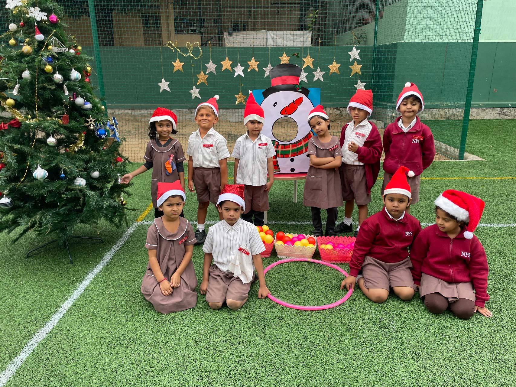 The KG Christmas celebration at National Public School was a festive and fun-filled event that brought heaps of joy and excitement to the little ones. The day commenced with a presentation on the story of Christmas and the joy of giving. Being a bag-free day, they indulged in fun and creative activities that included singing Christmas carols, thematic colouring sessions making a personalized Christmas greeting card and playing games like ‘Feed the Snowman’, ‘Bowl the Snowball’ and ‘Pick-up Snowballs’. The festive spirit was made sweeter with tasty holiday snacks brought by the students.