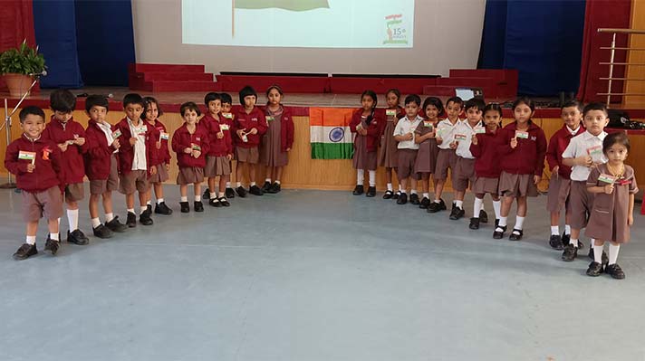 Independence day has a special place in the heart of all Indians. The kindergartners watched a program that was held in the school auditorium to commemorate India’s 75th Independence day. The Principal and teachers spoke about the importance of this Day in the life of every Indian. Children enjoyed watching videos and doing craft activity. They sang patriotic songs with full zeal and enthusiasm and also shared their views on Independence Day. Each student took home a TIRANGA as a part of the "Har Ghar Tiranga" campaign.