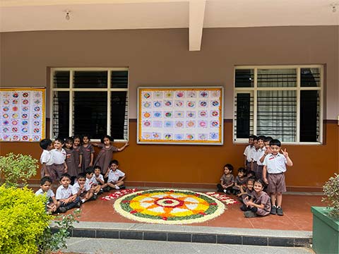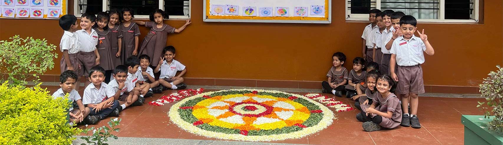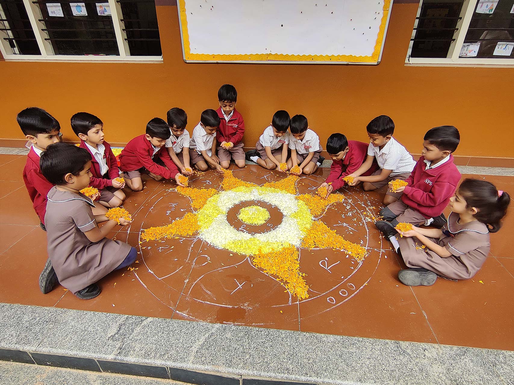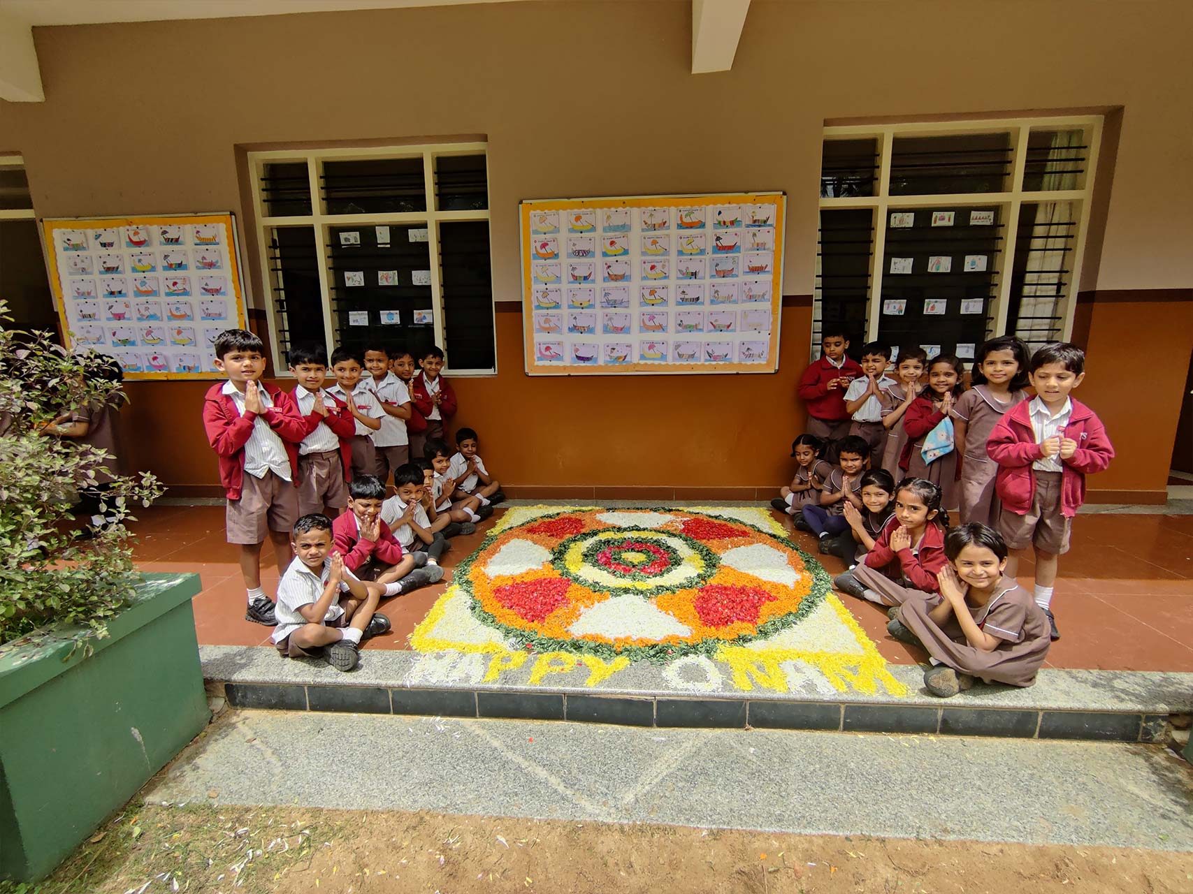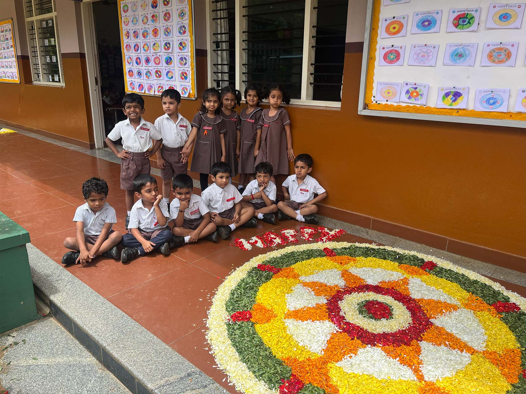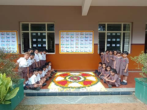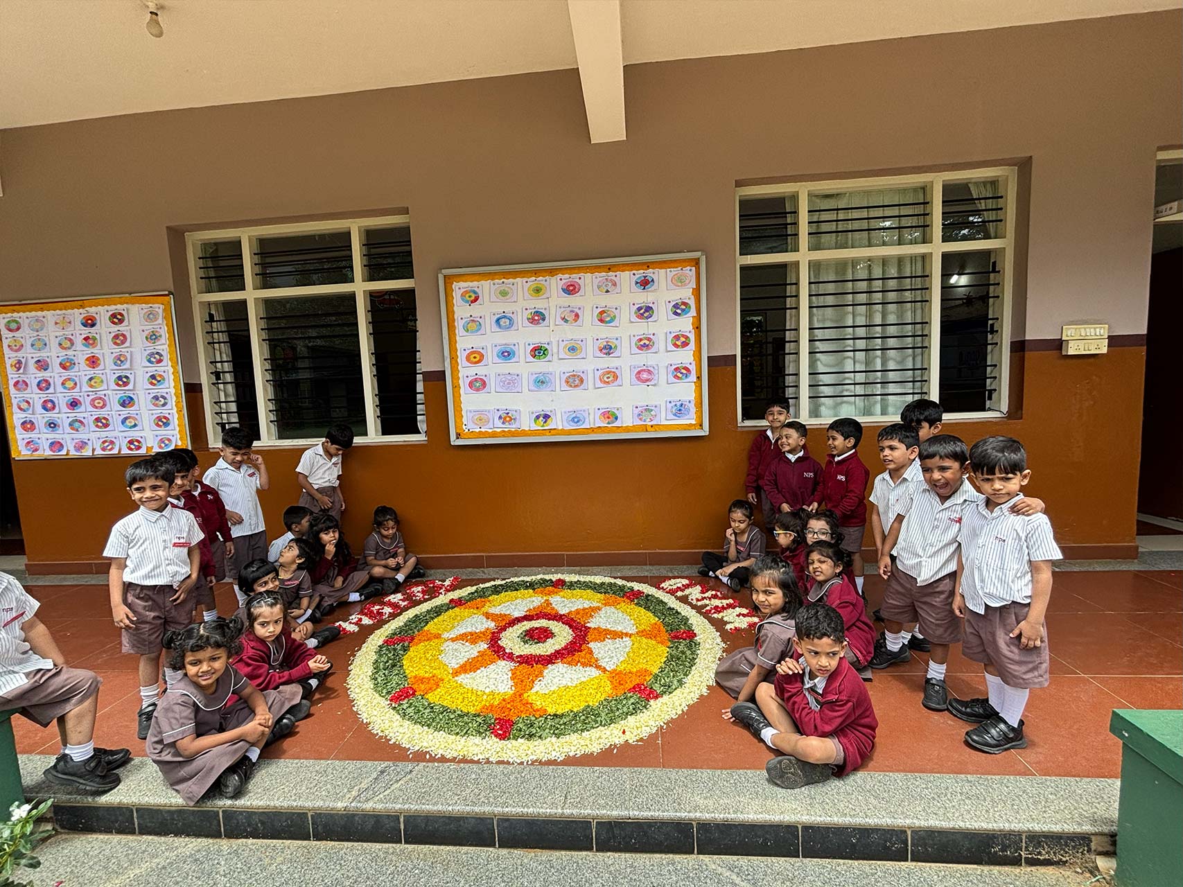Kindergarten students joyfully celebrated the vibrant festival of Onam with great enthusiasm and collaborative spirit. As part of the festivities, the young learners came together to create a resplendent Pookalam—a traditional floral design—using a variety of colourful petals. Their joint effort not only highlighted the beauty of teamwork but also introduced them to the rich cultural heritage associated with the festival. In addition to the floral decoration, the children enthusiastically engaged in completing a range of colourful Onam-themed activity sheets. The celebration brought about a sense of unity, cultural appreciation, and festive joy.