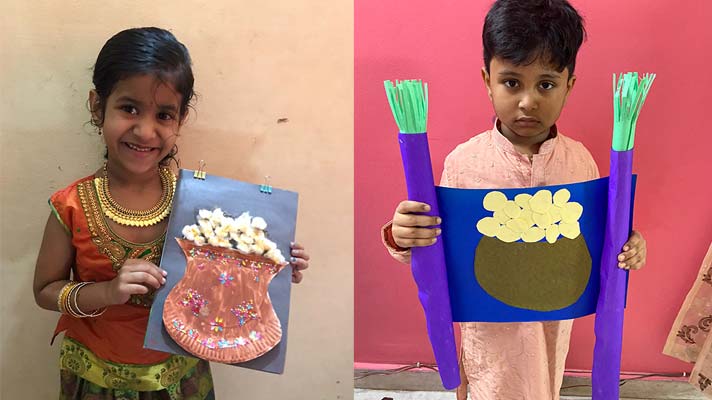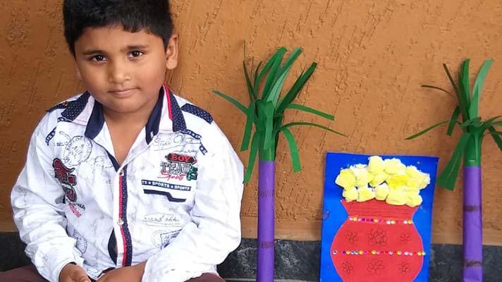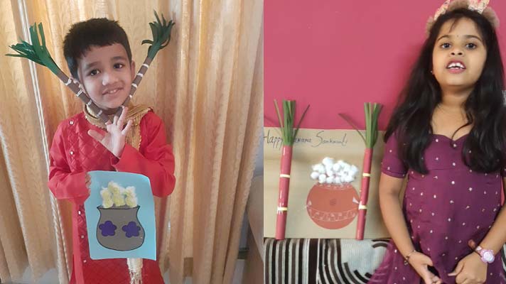 Sankranthi is celebrated with great enthusiasm throughout the country. Children were amazed to know that, this festival is known under different names-Lohri, Bihu, Pongal etc. The celebration began with children viewing a video and a regional song on significance of the festival followed by a few sharing their thoughts on the same. In continuation to enhance the festivity they displayed their craft activity and were happy to see their peers dressed in traditional attire. They enjoyed the virtual celebration with a lot of happiness and fervour.