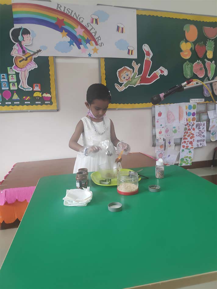 NPS RNR had ‘Talents Day’ for KG students to showcase their talents as school is the best platform with its safe environment and also appreciate the unique talent in others. We had children sharing a kaleidoscope of skills and interests—doing magic, photography, cooking, writing, and singing or playing instruments. It did boost their confidence. No matter what the sharing, the audience of classmates, teachers and parents offered enthusiastic support and appreciation.