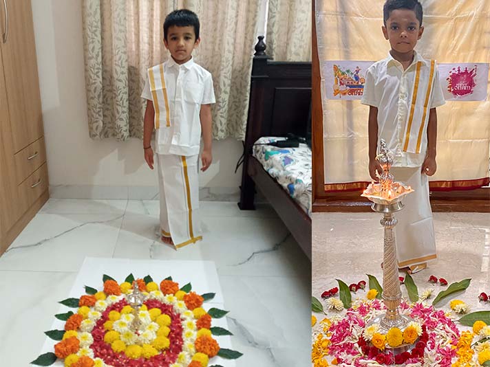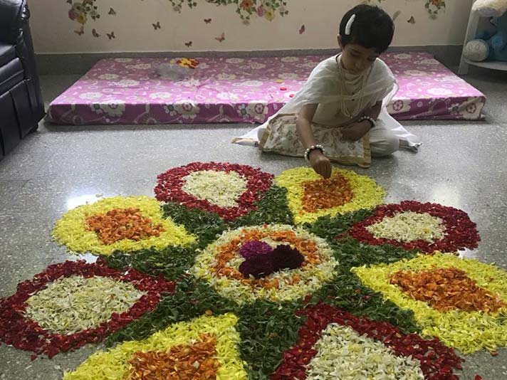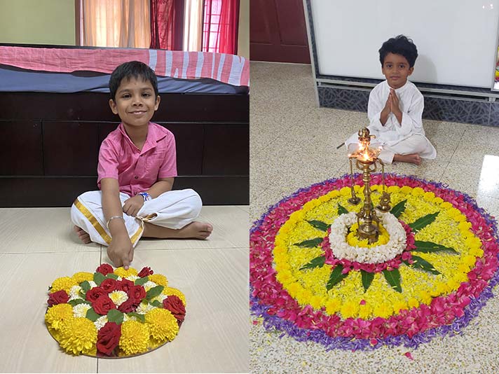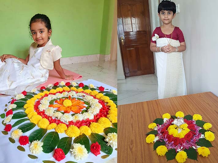 Onam was celebrated with much enthusiasm by the Kindergartners on the 19th August 2021. The day was marked by a story and a song portraying the significance of the festival. With their colourful ethnic wear in the traditional attire of Kerala, the tiny tots brought petals of varied colours and engaged themselves in making a colourful flower rangoli- ‘Pookalam’. Besides arranging the Pookalam, the students brought out their creative best and entertained everyone with their innovative talents related to Onam. The students participated in all the festivities with a lot of zeal, bringing out the essence of the festival.