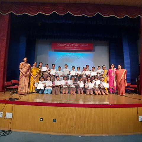 The students of Grades 3,4 and 5 presented a spectacular Mega Quiz Event held at NPS Rajajinagar on 22.01.24 was a delightful display of young minds actively engaging in knowledge exploring and teamwork and intellectual prowess. The Mega Quiz event kicked off with enthusiasm as participants engaged in a battle of wits, answering challenging questions from a wide range of topics. The quiz was designed to test not only the academic knowledge of the students but also their quick thinking, teamwork, and problem-solving skills. The event created an atmosphere of healthy competition and intellectual excitement. The Mega Quiz reached its pinnacle with the engaging and interactive Audience Quiz, adding an exciting element of participation to the event. The participants and winners were acknowledged and awarded with certificates recognizing their outstanding intellect and achievements.