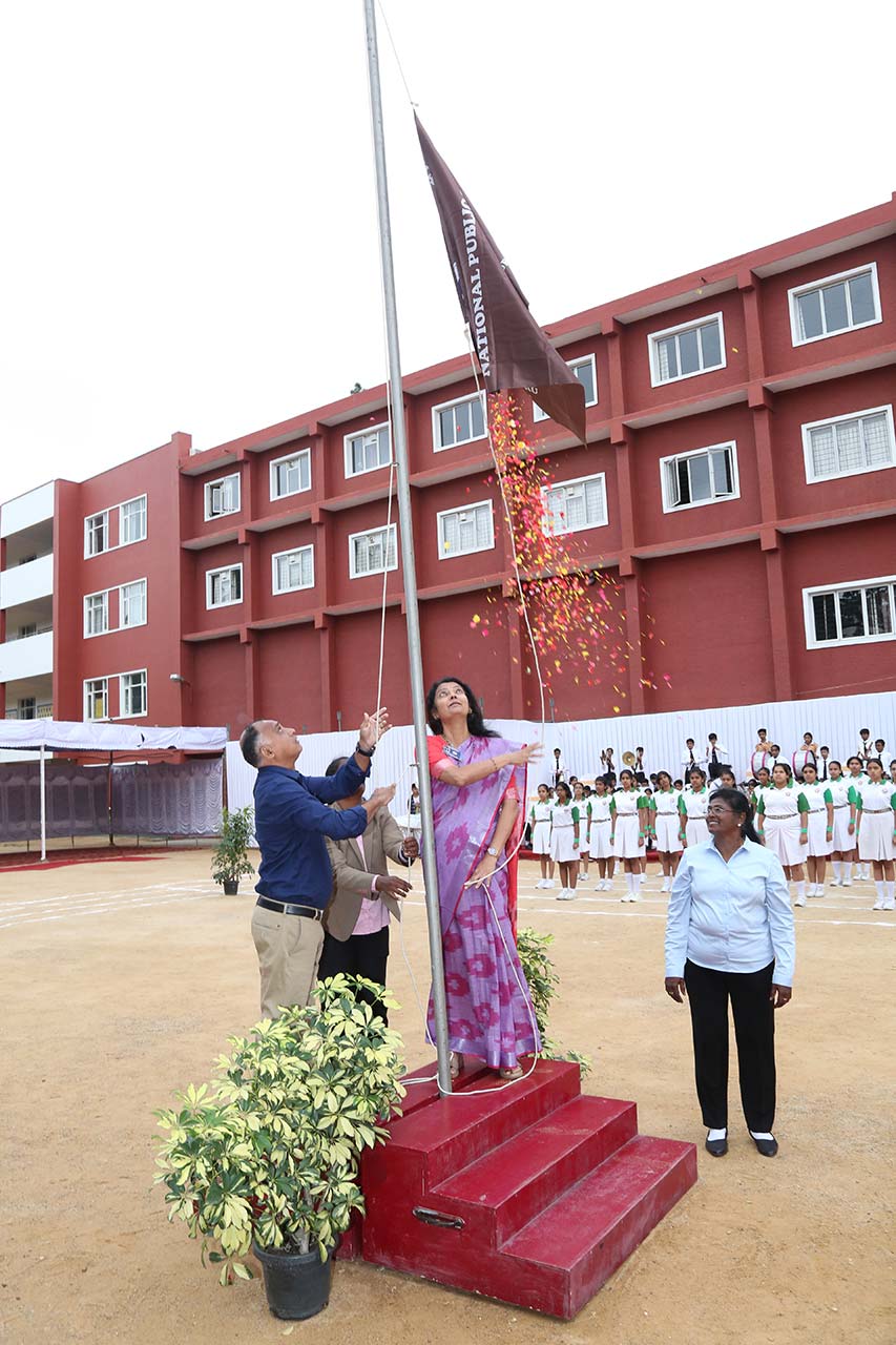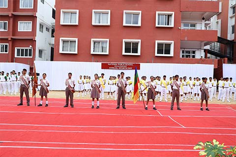 On July 19th, 2023, National Public School, Rajajinagar hosted its highly anticipated Annual Sports Meet for Grades 10, 11 and 12. The event was graced by the Guest of Honour Mr. Sachin Belvadi, a National Medalist in Basketball, Nadaprabhu Kempegowda awardee and an Establishment Officer at Raman Research Institute.