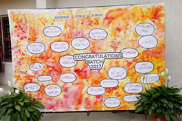 A breath of freshness, self-assurance and purpose filled the school grounds as the graduating class of 2017 looked set to celebrate the successful completion of one voyage and the beginning of another. The august gathering was welcomed by Dr Bindu Hari, Director National Public Schools, India and Singapore, NAFL and The International Schools after a melodious invocation to Lord Ganesha. The Chief Guest Prof. P Balram, former Director, Indian Institute of Science and Emeritus Professor Molecular Biophysics Unit, IISc Bangalore addressed the gathering and presented the graduating sashes to the students. In his inspiring speech he extolled the virtues of pursuing science as a career and emphasized the importance of research in the development of the nation. The graduating students enlivened the proceedings with a musical tribute to their parents - ‘Wind Beneath my Wings’. Ms Santhamma Gopalkrishna, Senior Principal and Ms Mini Jayan, Principal-Primary School wished the students success in all their future endeavours. The students were declared graduants by Ms Malathy Narayan, Principal-Senior School. The program concluded with a medley of songs by the teachers’ choir urging the students to ‘go light the world’ with their candle of knowledge.