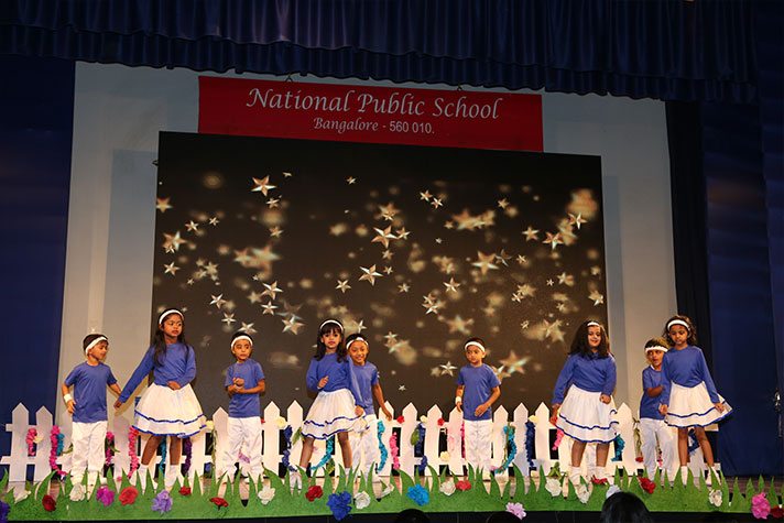 The Kindergarten Annual Day of National Public School, Rajajinagar was held on 3rd February 2018, at the school premises. The program titled ‘Al Fresco Amusement’ (Fun in the Open Air) was an attempt to drive home the message of the addiction of present day children to electronic gadgets and the need for them to go out into the open and play.