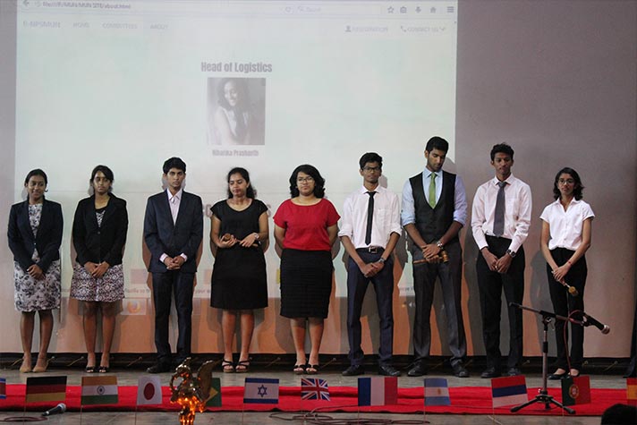 NPS Rajajinagar hosted their first intra-school competition, a simulation of the Model United Nations - R-MUN 2017 on 31st July and 1st August 2017 at their school campus. 140 students from grades 9 to 12 participated in this 2-day event organized by a team of 10 highly enthused and well-researched 12th graders who formed the Executive Board (EB). Four Committees headed by very able and well researched Chairs, Vice Chairs and Moderators conducted 5 stimulating and engaging sessions over 2 days which began with a very pleasing opening ceremony and ended with a memorable awards ceremony. Appreciation Certificates, Certificates of Merit with trophies and participation certificates were received by the EB, prize winners and all the participants.