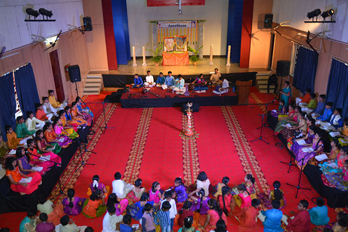 The second edition of Sri Purandaradasa and Thyagaraja Aradhane was held in the school auditorium on the 24th of November 2018. The auditorium was given an ambience fit for a royal musical concert. Our young singers of Grade 4 and 5 made their mark beginning with ‘Pillari Geethas’ by Sri Purandara Dasa, followed by ‘Shobillu Saptha Swara by Sri Thyagaraja. The young artistes of Grades 6-12 followed with their musical rendition that included two of the Pancharathna Kruthis and a Hindustani Bhajan as well. The instrumentalists comprised flautists, violinists, veena and sitar players accompanied by percussionists. The audience joined in the ‘Goshti Gayana’ which added to the appeal of the program.