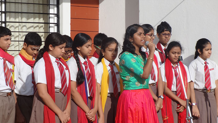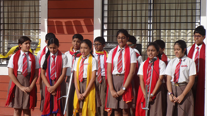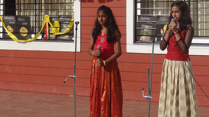 The grounds were decked with the colours of Karnataka as an invocation of a Purandaradasa kriti started off the celebrations to mark the birth anniversary of the sage poet and the formation of Karnataka. Informative speeches extolling the contributions made by eminent people of Karnataka, a song on the pride of Kannada and a folk dance celebrated the essence of Rajyotsava. A true piece of Karnataka heritage and culture was on show!