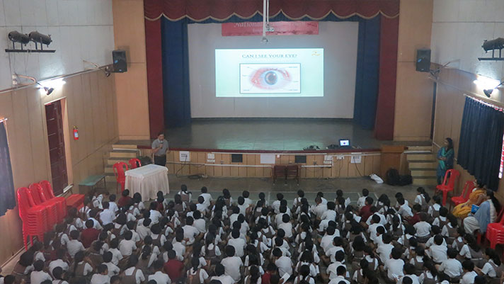 Seeing is important. This was the message conveyed at an interactive session by Dr. Venkatesh Iyer N.S, Director, Sachetana Eye Clinic for the students of KG to 5. The talk helped the children recognise various eye hazards and adopt healthy behaviours to improve and maintain eye health. The emphasis was on applying practices and principles of holistic eye care into our lives to achieve better eyesight.