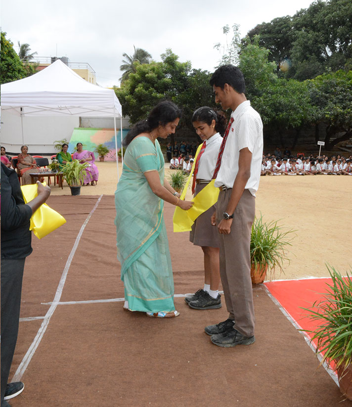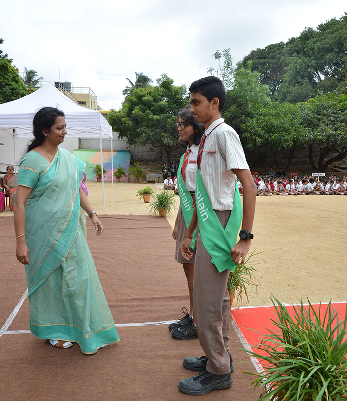 A new academic year, a new beginning... a new Student Council. NPS Rajajinagar inducted a new Student Council for the year 2018-19 on the 20th of June 2018. The event began with an invocation, seeking blessings for a successful year ahead. In her speech, Principal Ms Malathy Narayan encouraged the students to set goals, make use of the opportunities given and achieve accolades for themselves and the school. The members of the School Council were then formally inducted as Prefects, Captains of the 4 houses, Presidents and Secretaries of associations. A foot tapping dance and an inspirational song to the accompaniment of the School Band added variety to the event.