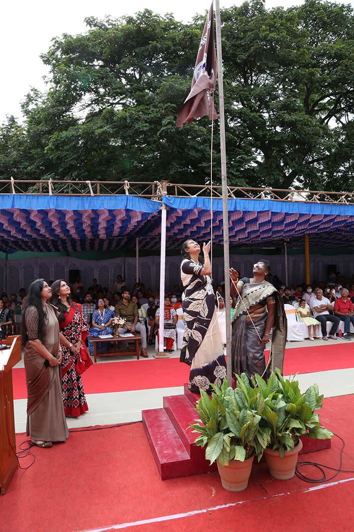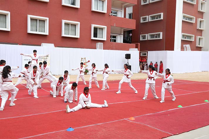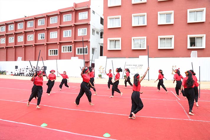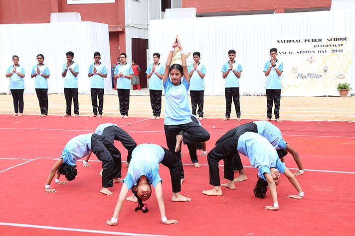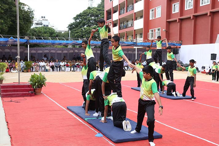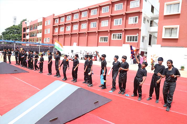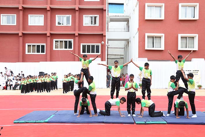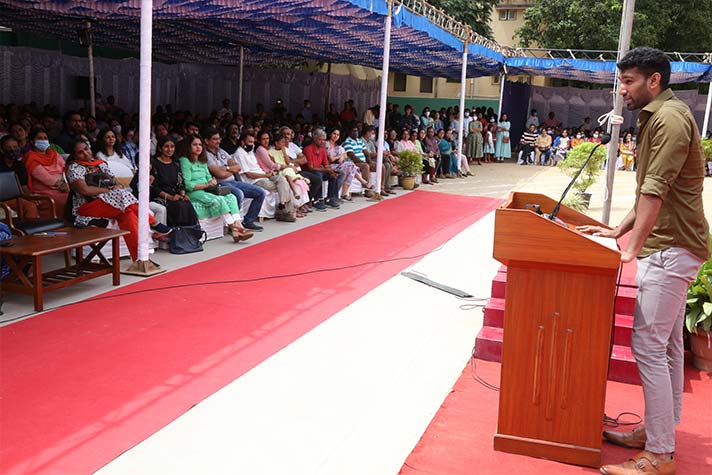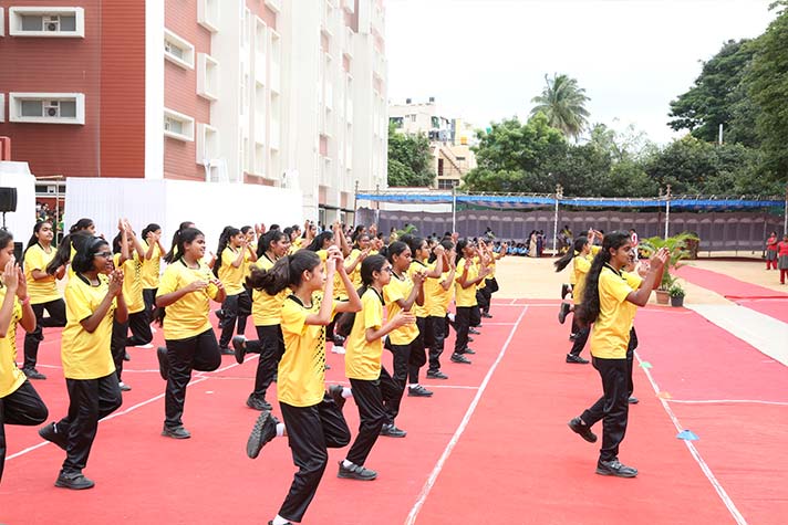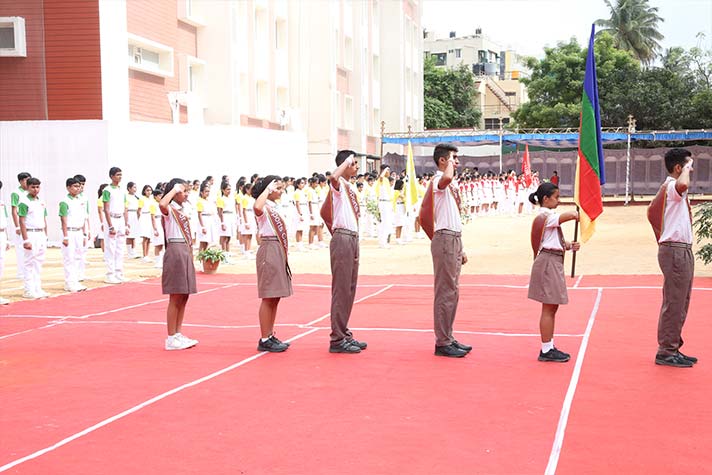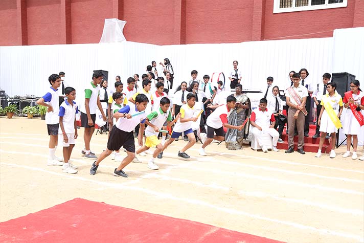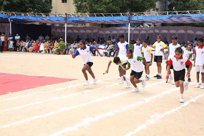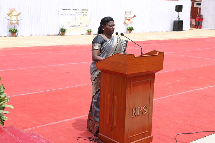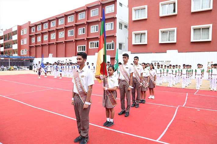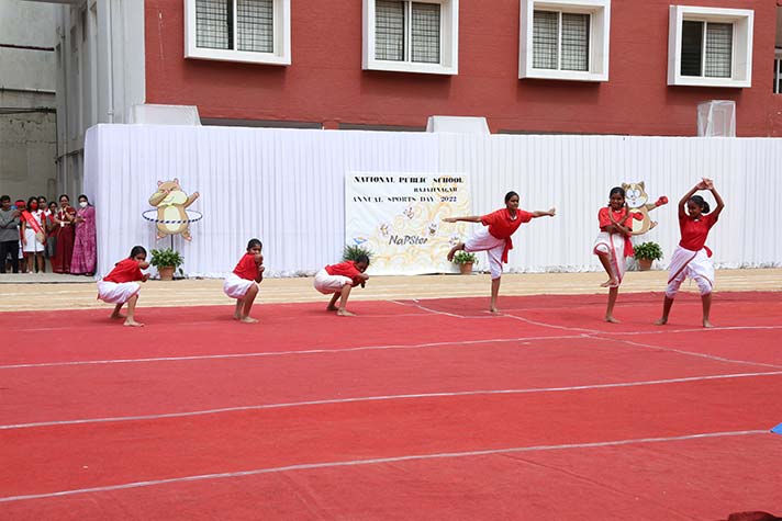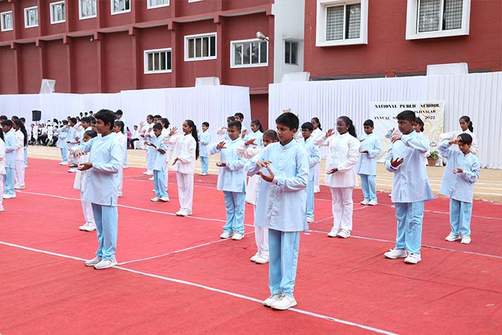 On the morning of 20th August 2022, NPS RNR’s school playground was filled with fervour and excitement experienced amidst thrills, shrills and cheers. On the occasion of its MY Annual Sports Day, the school was overflowing with great zeal, passion and excitement. The guests of honour for the day were school alumni Ms Shailaja Shankar and Mr. Vikas Vasu. The programme began with hoisting of the school flag by Principal Ms. Malathy Narayan, after which she declared ‘Get Fit 2022 – Annual Sports Meet’ open.