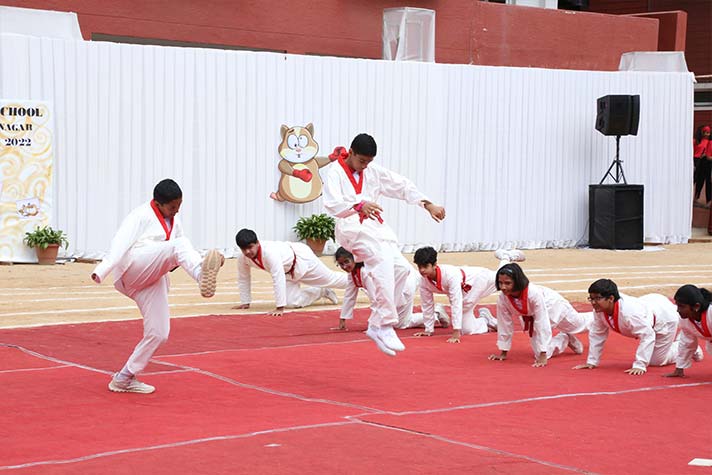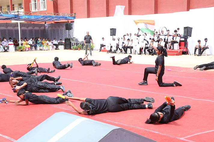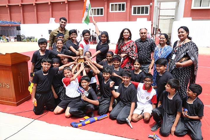 The Inter-House parade witnessed students marching in tandem to the rhythmic beats of the young school brass band. This was followed by various sports displays by each House, depicting its colour and characteristics. The much-awaited relay races revealed the competitiveness and sportsmanship among students. The participants were guided ably and encouraged by their Captains and Vice captains at every stage. Phoenix House was adjudged the Best Marching Contingent and the Commandos of Centaur House walked away with the Best Display trophy. Sports achievements by our sports teams in the short span of two months were highlighted, followed by the vote of thanks.