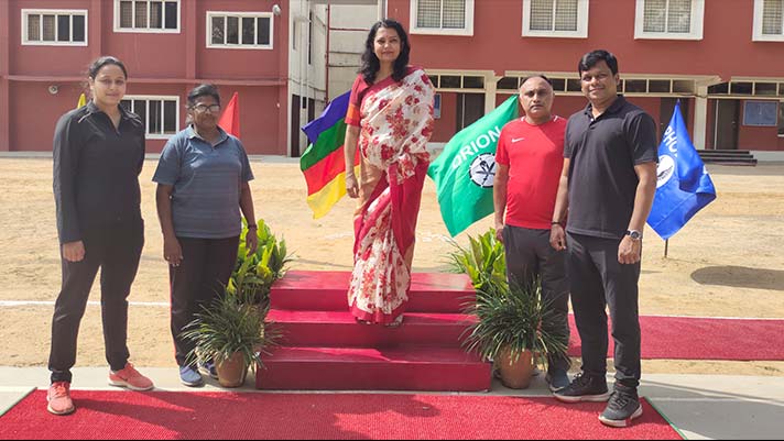 The event began with an inspirational video, showing us that we need to rise to challenges and never give up. The school grounds were decorated with the flags of the 4 houses and against this backdrop Principal Ms Malathy Narayan hoisted the school flag in the presence of the PE teachers. An inspiring welcome speech by the Principal followed, wherein a message from the Board of Governors was conveyed and the involvement of all stake holders was appreciated. A Yoga display, highlighting the benefits of this ancient art added to the variety of the day.